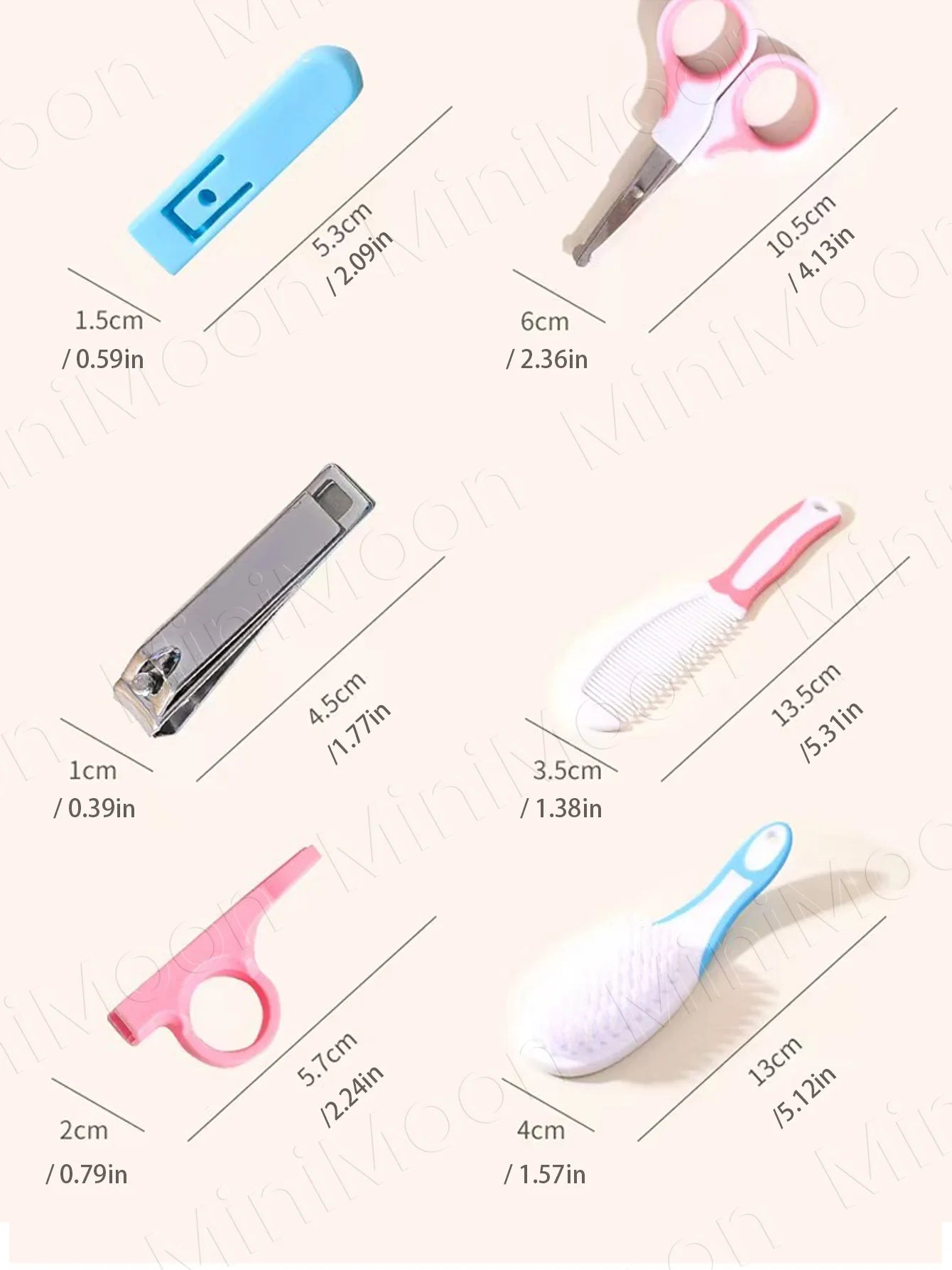 Each tool is sized and shaped for tiny fingers, delicate nails, and soft scalp—gentle enough for newborns, practical through the first year.
